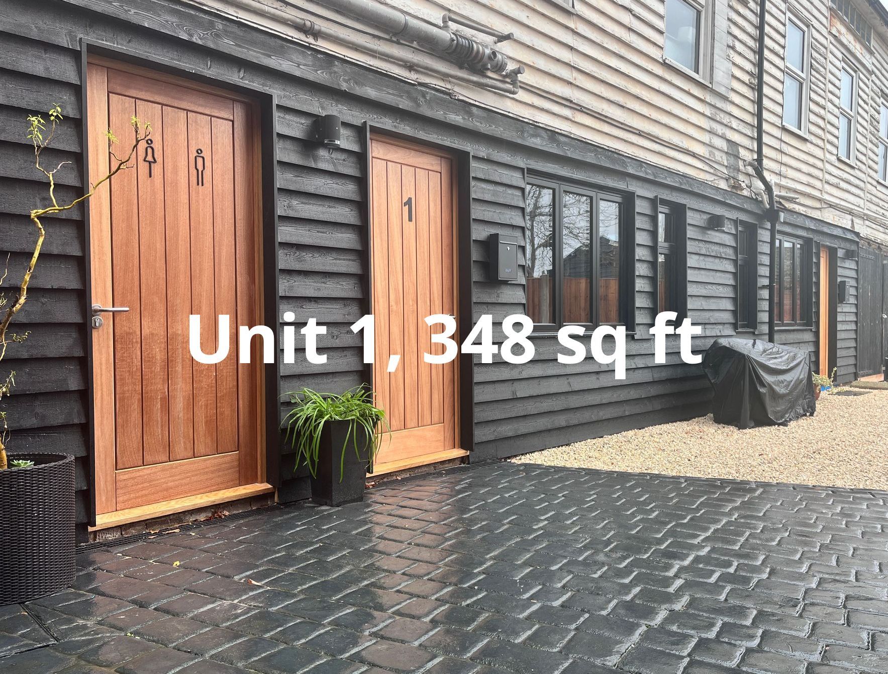 Private courtyard setting, with a communal restroom shared between units, ensuring comfort and practicality for your team and clients.